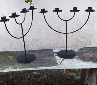Bonjour Mesdames et Messieurs voici un lot de deux chandeliers en acier noir à 5 branches à chercher à Reveste les roches ou parking du Pont Charles Albert à Carros . Merci.