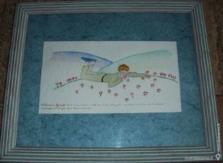 <strong>Tableau aquarelle «Le petit Prince de Saint-Exupéry » petit tableau aquarelle originale</strong> <strong>encadré sous verre , pas signé</strong> <strong>dim. peinture
