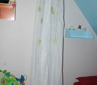 Voile Papyrus avec pattes même couleur de 10 cm. 2 rideaux : - Largeur 2.90 m - Hauteur 1.80m - Largeur 2.30 m - Hauteur 2.44 m J'ai changé ma tapisserie et ils ne sont plus en