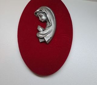 figurine étain signé à thème sur velours rouge très bon état dimensions 20 x 11 . plus frais envoi