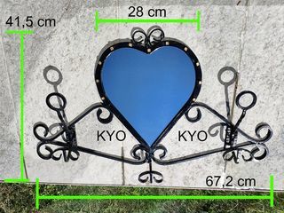 Vends un miroir portemanteau mural très robuste (solide), modèle unique : - Modèle : miroir en forme de coeur entouré de carrés dorés. Portemanteau à 3 crochets pour manteau, vest