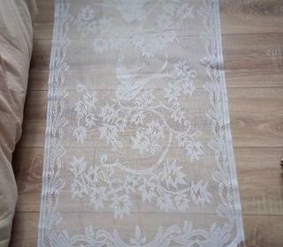 Paire de rideaux blanc "les oiseaux" 60 x 120 cm en très bon état // dimension d'un rideau 60 X 120 cm // passant pour tringle // finition franges
