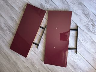 Etagères avec fixations invisibles Coloris rouge/bordeaux Aspect brillant Long 60 cm larg 25 cm épaiss 4 cm Poids env 1.5 kg l unité / charge maxi 7 kg sur chaque étagère Eta