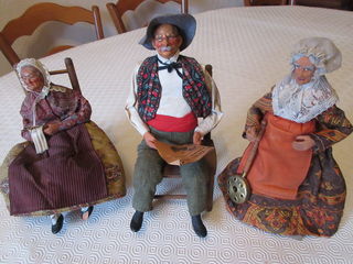 Artisanat Santons provençaux habillés , visage en terre cuite - La femme à la bassinoire , debout ; 26 cm 15 e - La mamée tricoteuse , assise ; 21 cm Pieds abimés ( voir photo