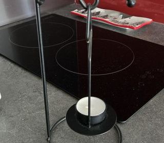 lampe art déco MAZDA laquée noire avec tulipe en opaline et en bon état. D'époque art nouveau art déco vers 1930. Hauteur 78 cm diam 25 cm. Avec la douille E27 a tirette qui fo