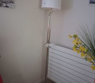 Lampadaire articulé très bon état dimension de 140cm a 175cm metal chromé et chapeau pvc blanc Pas de livraison ni envoi remise en main propre contre espèces