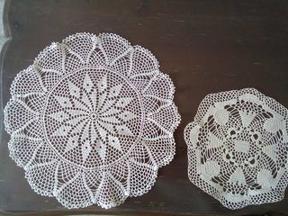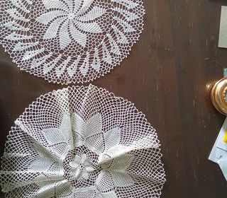 Napperons crochet faits main très fins beige diam 26 blanc diam 35