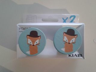 3 LOTS 2 BOUTONS POIGNEES POUR COMMODE de chez KIABI soit 6 poignées - 3 Lots de 2 poignées en bois peint bleu pour commode ou armoire de bébé - Motif peint "Renard " - Diamètre 4