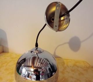 Jolie suspension électrique type industriel en acier chromé , intérieur blanc , diamètre 21cm hauteur 15cm longueur du câble 80cm Grand culot pour ampoule 60w maxi Ampoule n