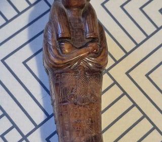 Magnifique ensemble décoratif d'inspiration Égypte Antique représentant un sarcophage à l'effigie d'Anubis, le dieu à tête de chacal, acheté en Égypte. ?Détails : Le sarcophage s
