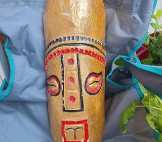 Masque de l'Afrique de l'Ouest ( Côte d'Ivoire, Mali , Burkina Fasso,...) de décoration représentant un homme aux yeux fermés, les cheveux sous la forme de 2 lignes en demi-cercles