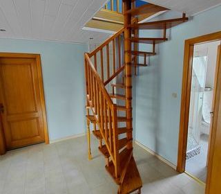 Vds escalier hélicoïdale en hêtre massif avec garde corps Hauteur 2.73m Largeur et profondeur 1.17 m Pour celui qui serait intéressé, il serait souhaitable de m'aider à démonter