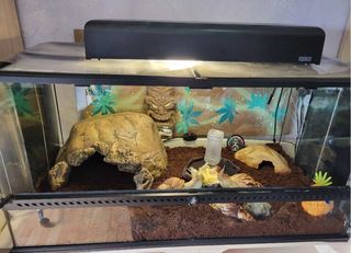 Cède 4 escargots géants africains "achatinae" AVEC leur terrarium et accessoires. - 2 d'un peu plus de 2 ans (1 "albinos" et 1 "tête noire") - 2 d'1 an, nés chez nous (également 1
