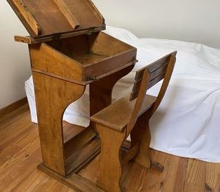 Vends bureau écolier ancien chaise à coulisse et rangement sous le plateau