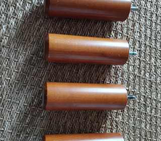 Lot de Pieds de lit X 4 en bois teinté merisier - Jeu de 4 pieds de lit en bois - Bois teinté Merisier - Hauteur du bois 15cm / diamètre 5cm - Longueur Vis 3cm - Article d'occasion