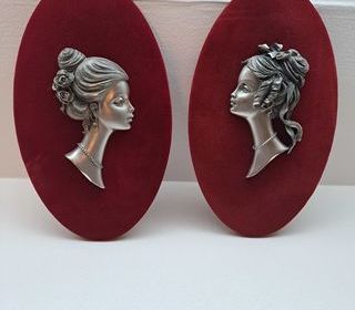 sur velours rouge, très bon état dimensions 11x 20cm . le prix est pour les 2 figurines