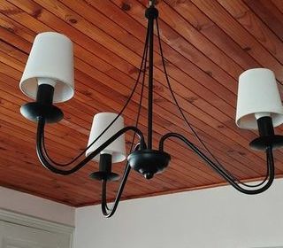 Luminaire noir, élégant, métal, avec trois lampes, bon état.
