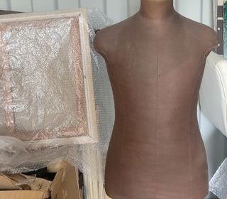 Après partage , vends ce très beau mannequin de la célèbre maison parisienne Stockman sur pied en bois et datant des années 30 . Taille 46 . Démontable en trois parties . Comme neu