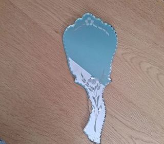 ancien Miroir Irena Jaworska élève de line vautrin hauteur 16 cm diamètre 12 cm matière plomb doré bon état.