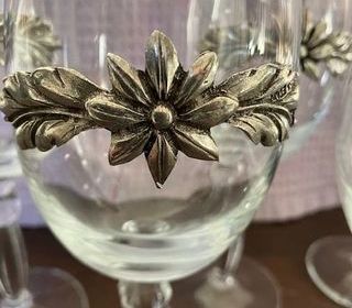 Lot 4 verres pierres collées diamètre 8 cm hauteur 11 cm trace colle (doivent pouvoir partir) sur le poisson et le papillon - PAS AU LAVE VAISSELLE BIEN SUR ...achetés 800 FRF en 1