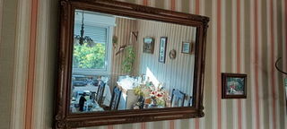 Vends grand miroir sculpté rosaces. Bois foncé. Dimensions : 85×60. Petit prix: 50€