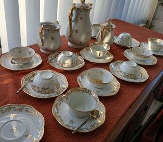 un servise a cafe comprenant 11tasses et sous tasses plus cafetiere verseuse plus sucre