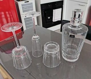 A vendre 6 verres de chaque en cristal et carafe en cristal, jamais servie. a venir chercher sur place .
