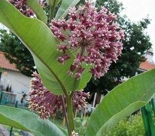 Herbe aux perruches ou Asclépiade de Syrie ou Herbe à la ouate (Asclepias syriaca) Grande plante vivace de 1,60m environ, grosse floraison en boule parfumée et mellifère suivi de