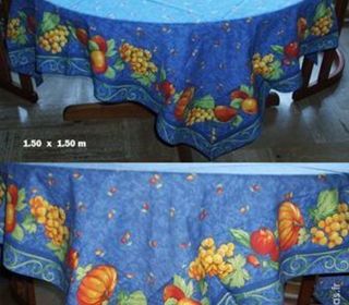 <strong>NAPPES DE TABLE 'fait main' Nappes de table , neuf, bordées d'un large galon cousus de fruits , fleurs ou dessins provençales Nappe bleu / coton 1.50 x 1.50 m
