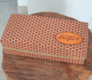 Boite cartonnée Vintage recouverte de tissu orange/marron " Fagot " 31X14 cm Très jolie boite pour bijoux, nécessaire de couture ou autre ! Collection ou décoration Très " Vint