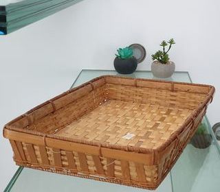 Plateau, Panier, Corbeille en bambou rectangulaire 34 X 21,5 cm Etiquette présente : " Made in the People's Republic of China " Décoration, rangement etc. Dimensions socle env 3