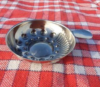 Testevin utilisé en ?nologie, ancien Gravé " RfranceC " au dos de la poucette Il permet d'examiner le vin, le sentir et le gouter Les stries permettent de refléter la robe des v