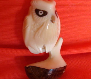 Si l'annonce est en ligne, l'article est toujours disponible. Chouette en corozo (ivoire végétal) avec des yeux noirs Hauteur : 6.5cm ; Larg : 3cm Etat neuf Envoi possibl