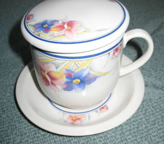 Si l'annonce est en ligne, l'article est toujours disponible. Mug / Tisanière Tasse avec filtre pour faire infuser thé, infusion Décor fleurs Dimensions : Tasse : Haut : 9cm,