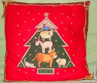 Si l'annonce est en ligne, l'article est toujours disponible. Coussin au point compté Animaux Noël Garni / Déhoussable Galon et fils dorés au contour Travail soigné (