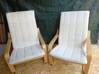 2 fauteuils Ikéa ( vendu par paire) structure bois , assise mousse recouvert tissu déhoussable.