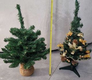 Deux petits sapins de Noël synthétiques d'environ 60 cm Un avec les décorations Un autre à décorer A récupérer sur place