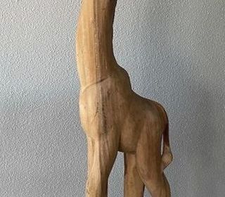Grande Sculpture Girafe En Bois Exotique sur socle Bois Exotique Brut à peindre ou à laisser en état Plus de 40kg Dimension 200 x 50 x 30cm A récupérer sur Place