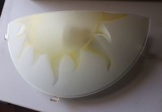 2 appliques soleil en verre poli, motif jaune, base métal, en parfait état, envoi possible en relais colis