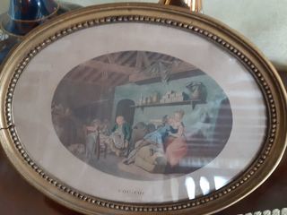 Une paire de cadres ovales en bois gravure de scène romantique très vintage Mesures Longueur 21,5cm et largeur 16cm