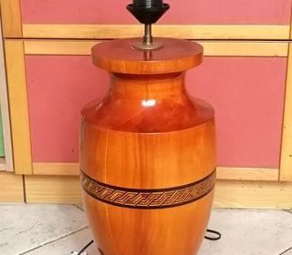 Lampe en bois travaillée et réalisée à la main par Luc RABAULT. Ce modèle est un exemplaire unique signé de la main du créateur. La hauteur est de 55 centimètres au culot env