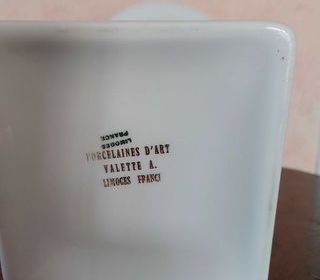 Vase Medicis en porcelaine d'art Limoges "Valette A ". Décor et signature Fragonard. H 23cm base carrée 10cm de côté dimension haut 15cm. Ni fêle ni éclat. pas d'usure sur le Dé