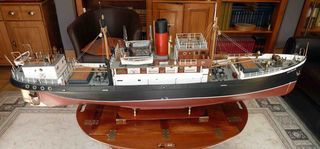 Grand modèle de cargo mixte, façon maquette d'armateur 1/32 Nombreuses pièces d'accastillage bronze, laiton,.Bois précieux Long 165 cm, large 30 cm Autres photos sur demande Pr