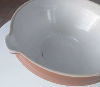 Grésale terre cuite avec bec verseur, 1 éclat en fond ( voir photo), sans incidence pas fendue. Extérieur très bon état. Dimensions diamètre H 36cm fond 20cm H 20cm. A prendre