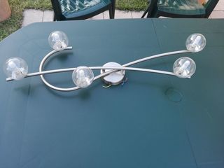 Bonjour je vends cause changement de décoration mon plafonnier cinq boules en métal gris. Il est en parfait état.