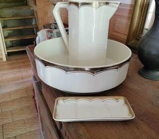 Ancien ensemble toilette, bon état, Broc cuvette savonnier, bon état, à venir chercher, paiement en espèces exclusivement.