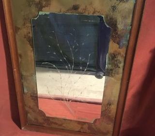 Particulier vend glace type " Bistrot " décorée avec cadre bois, 1,17 m x 0,83 m. Prix : 50 euros. Emportée. Réponse téléphone uniquement.