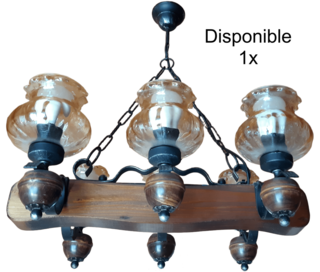 1x Un lustre rustique de salon 6 branches pour 6 ampoules en bois et acier forgé. Prix 25€ 1x Une lampe rustique avec abat-jour 3 branches pour 3 ampoules en bois. Prix 10€ 1x Un