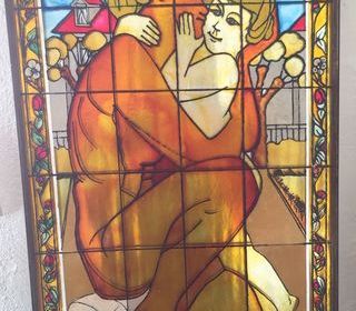 TABLEAU PEINTURE SUR VERRE VENDU EN L ÉTAT DIMENSIONS 72.5 cm x 42 cm
