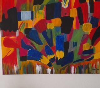 Tableau acrylique abstrait multicolore 80 cms sur 60 cms. Peint pzr moi même Retrait sur ventabren.